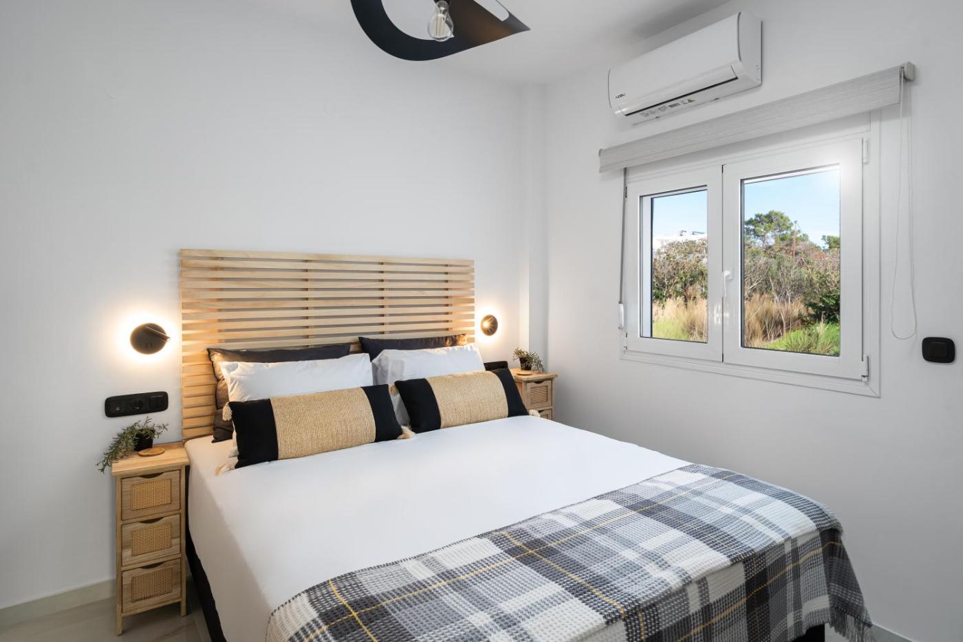 Two-Bedroom House. Featuring a private entrance, this air-conditioned holiday home is comprised of 1 living room, 2 separate bedrooms and 2 bathrooms with a walk-in shower and a hairdryer. Guests will find a stovetop, a refrigerator, a dishwasher and kitchenware in the well-equipped kitchen. The holiday home also has a barbecue. Boasting a terrace with sea views, this holiday home also offers a washing machine and a flat-screen TV. The unit offers 3 beds.